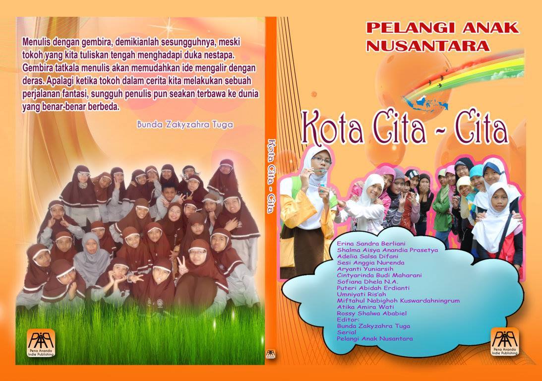 KOTA CITA-CITA Penulis : 12 penulis SD Kategori : Kumpulan Cerita Pendek ISBN : 978-602-98200-4-1 Cetakan ke-1 : Nopember 2013 Halaman : ix + 83 halaman Ukuran : 15 cm x 21 cm Cover : Doff Laminasi Harga : Rp. 35.000,